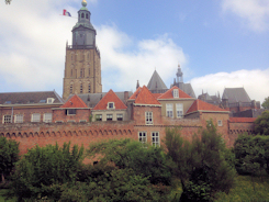 Na de rondwandeling was het tijd voor een verfrissende tocht met de fluisterboten over de Grote Gracht en de tweede rivier bij Zutphen, te weten de Berkel. Dit riviertje heeft een heel andere functie dan de IJssel. De schippers van de fluiterboten wisten daarover te vertellen, net zoals over de bruggen, de oevers met mooie stadstuinen en de gebouwen langs de gracht en het riviertje. De afvaart is midden in Zutphen vlakbij de Waterpoort de Berkel die vanaf 1312 de twee delen van de stad over de rivier met elkaar verbond. De poort is een onderdeel van de stadsmuur en had ook als functie om de stad te beschremen tegen indringers die via de Berkel probeerden de stad te bereiken. |