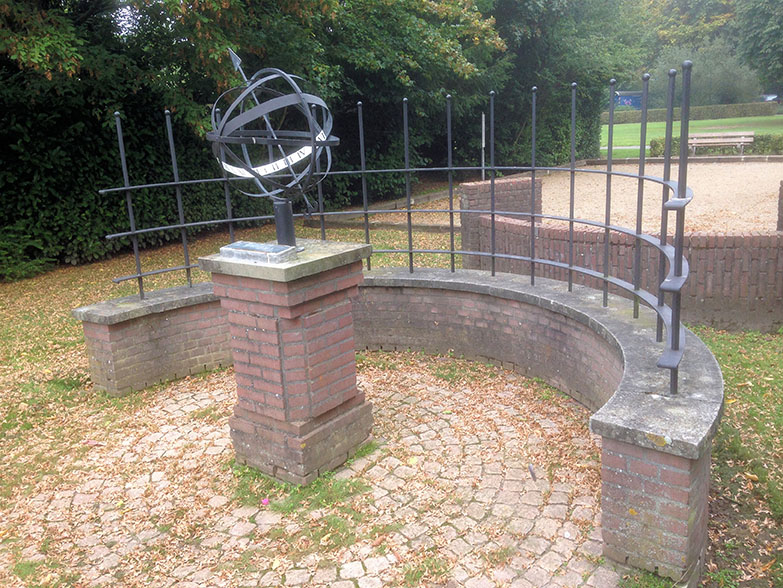 - De zuil, met daar bovenop een zonnewijzer, verwijst naar de zon, met de boodschap om met een sprankje licht het leven zonnig en blijmoedig tegemoet te zien.